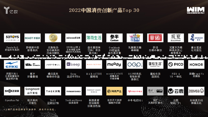 作为全球创新领域的年度盛会,世界创新者年会(WIM)至今已成功举办七届。WIM大会基于创新性、产品调性、消费者反馈、品牌文化等多个独立指标筛选,评选出2022最具代表性的新消费创新产品TOP30,旨在寻找有潜力引领未来的成熟品类革新者与新品类定义者。