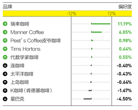 数据显示,在新一线城市和二线城市18-24岁咖啡消费者的占比中,瑞幸达到了25%以上。在《第一财经》杂志2022年“金字招牌”公司人品牌偏好度调查中,瑞幸的消费者偏好度在连锁咖啡类目中排名第一,品牌偏好度达到了11.19%。瑞幸咖啡,在越来越多的消费者心里成为“性价比高”、“购买渠道方便”、“产品口味好”的代名词。