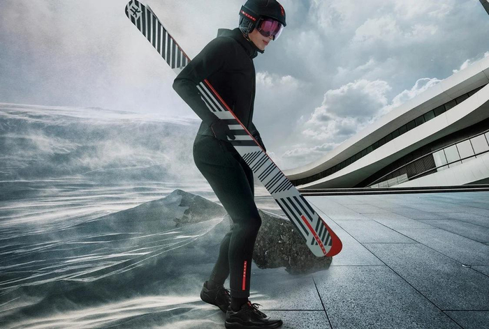 22/23冬季,冰雪运动无疑是炙手可热的话题。而在这一热浪下,奢侈品牌纷纷布局。Prada也推出了自己的滑雪系列Linea Rosso,除了服装等滑雪单品,也推出了滑雪板、雪仗等滑雪装备。