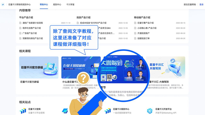 巨量引擎帮助中心从聚合帮助平台、统一服务能力和体系化内容库三大能力出发,助力用户熟练掌握巨量引擎商业产品,为用户提供更便捷的帮助服务。