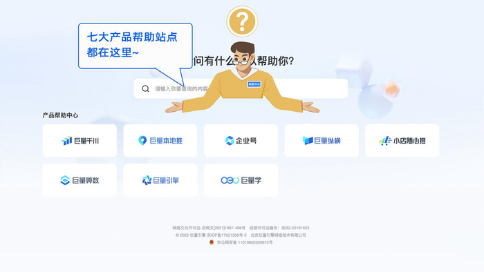 随着巨量引擎商业产品的不断增多,在满足不同用户需要的同时,也展现出了帮助内容分散的问题。用户需要单独登录每一个商业产品平台,获得他们想要找到的帮助内容。为了在庞大的产品体系中,帮助用户更快速的找到他们想要的答案,「巨量引擎帮助中心」聚合巨量引擎商业产品帮助站点,目前已接入巨量千川、企业号、小店随心推、巨量学、巨量纵横、巨量算数、巨量本地推7个业务方,建立独立门户,一站式解决问题。