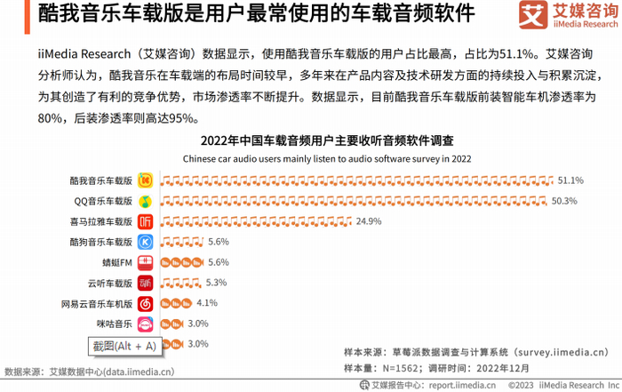 《中国车载音频行业发展年度研究报告》:用户满意度酷我音乐领先