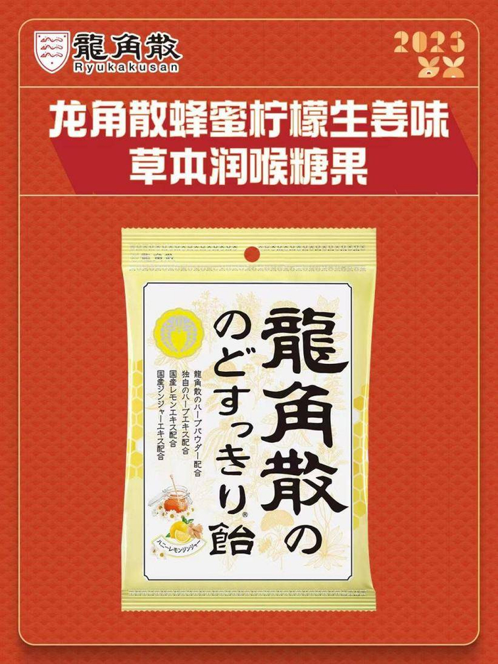 龙角散蜂蜜柠檬生姜润喉糖精选龙角散草本粉末,配合多种清新草本萃取物,搭配高品质蜂蜜与生姜精华,让口感更加温润,祛寒润燥,甜蜜温暖的口感也让过年的氛围感拉满。