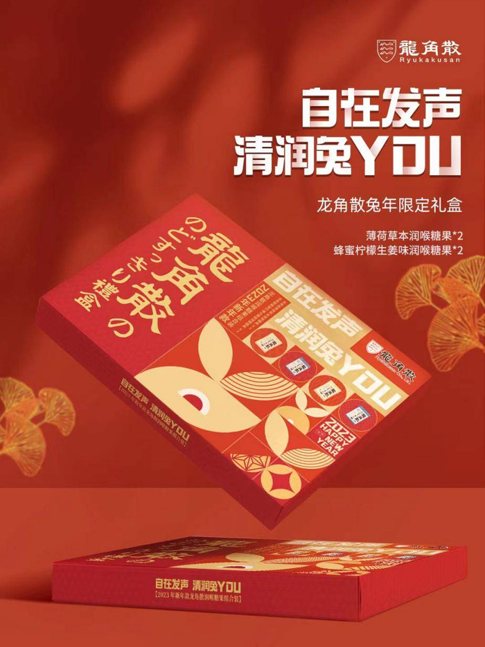 值得一提的是,龙角散新年限定礼盒主题为“自在发声 清润兔you”,寓意龙角散将所有关于健康与爱的美好祝福都送给用户,以健康新年糖解锁清润力量,助力自在发声,健健康康新一年。