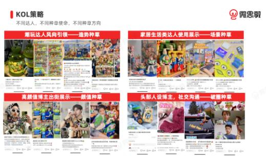 首先在众多产品线中,找到符合小红书用户喜好的潜在爆款产品,例如:皮克斯IP猫咪头套、三眼仔/苏利文钢杯、巴斯光年飞冲天杯子、四大IP石膏画等;根据产品类别匹配合适的达人类型,进行多产品矩阵种草布局。