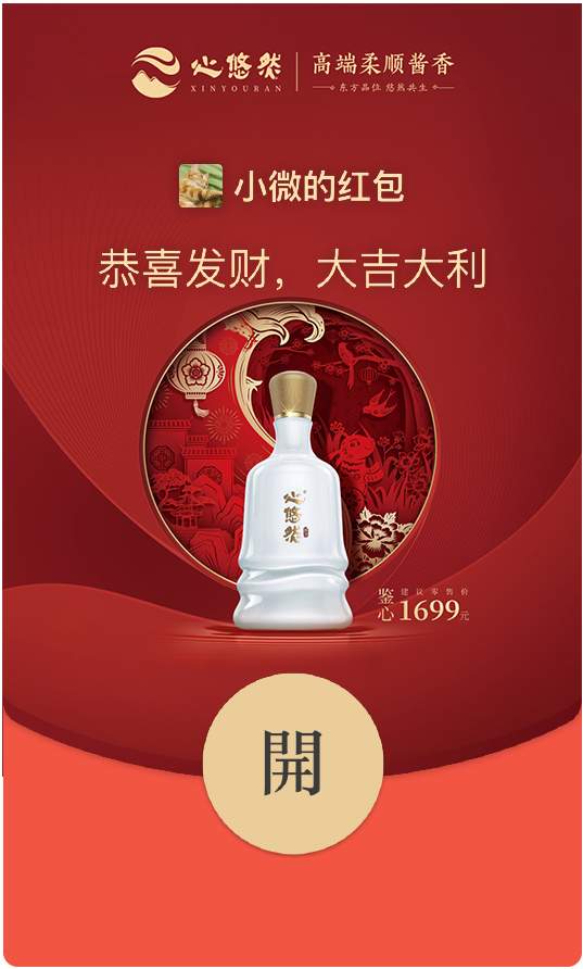 从诚意十足的“万千金喜码上赢”活动、趣味IP表情包,到精美的微信红包,再到融合品牌文化推出的祝酒词创意H5,消费者通过这些紧贴生活的场景,不断加深对心悠然的认识。此外,柔顺酱香白酒开创者的行业地位,独特的品牌内涵、和以用户为核心的整合营销玩法,也让心悠然在竞争激烈的白酒新年营销中出其不意。相信随着新春创意内容的陆续揭晓,心悠然也将有更多惊喜带给大家,且让人拭目以待。