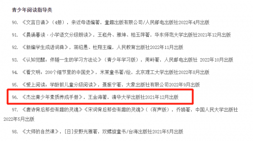 其中清华大学出版社2021年12月出版的《杰出青少年素质养成手册》,系杭州扶鹰教育创始人王金海著作。