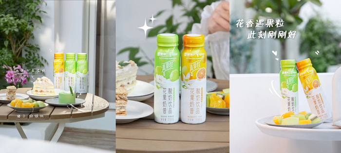 这对CP的相遇和诞生,也是那么的「刚刚好」。晚春的茉莉遇见早秋的青提、清新的橙花遇到爽朗的蜜柚,融在一起的美好,惬意得刚刚好。有淡淡真实花香,有真实果粒,搭配在一起,加上优质生牛乳的发酵,刚刚好的营养美味;低脂肪轻负担,刚刚好的减负;茉莉与青提,橙花与蜜柚,刚刚好的心动合拍。
