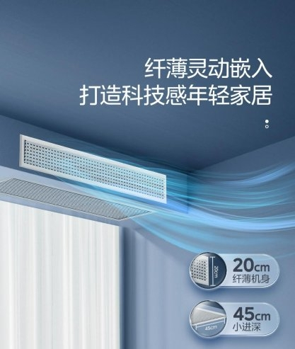 顺应近年来嵌入式家居的潮流,美的星光嵌入式家用空调纤薄灵动的外观足以获得全家的青睐。仅20厘米的纤薄机身和45厘米的小进深,让美的星光嵌入式家用空调可以轻松安装在阳台和客厅的连接处,或者和房间衣柜平齐,美观大方节省空间。与传统的柜机空调相比,美的星光嵌入式家用空调占据空间更小,告别大体积空调落灰后繁琐的擦洗步骤,将父母从打扫卫生的烦恼里解放出来。