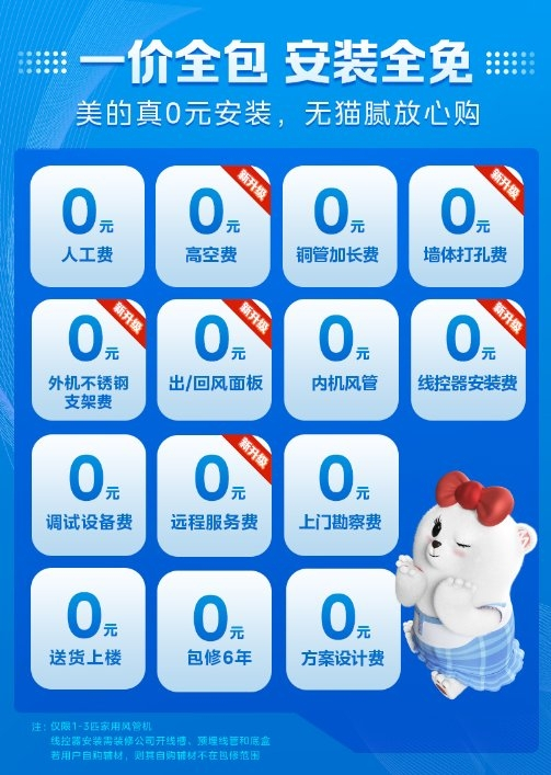 如今,市面上许多商家宣传免费安装,却对于材料费、服务费只字不提,结账时类目繁多的增项让用户瞠目结舌。美的推出的“一价全包”服务,承诺线上购买风管机安装不收取任何额外费用,不玩套路,扫除消费者对于安装费用的担忧。从送货上门到安装上墙的全流程中,即便铜管超支、高空作业、加长风口等等,用户也不需要额外付费,让习惯节俭的父母也赞不绝口。