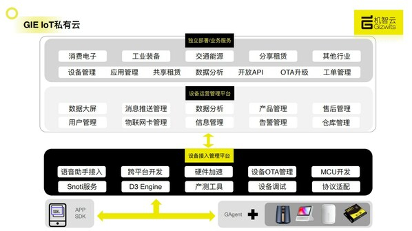 除公有云服务外,平台特色产品还有GIE私有云服务,即为企业提供物联网平台私有部署服务,支持海量设备连接、设备数据采集、远程运维托管、系统升级维护、全球化部署、自助开发及具备开放API可对接企业管理系统,最快3个月建设完部署。GIE产品已帮助多个品牌企业建设完成物联网私有云平台部署,包括智慧能源运维云平台、智能家居管理云平台、物联网系统管理平台、物联网运营管理系统、智联网数据中台、物联网数据中台等,携手品牌企业共享AIoT商业价值。
