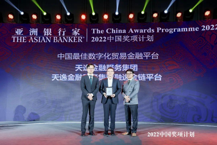 2022年8月,国际权威财经媒体《亚洲银行家》2022年度中国奖项计划颁奖典礼盛大举行,天逸集团“融逸金链平台”独揽2022年度《亚洲银行家》“中国最佳数字化贸易金融平台”大奖。