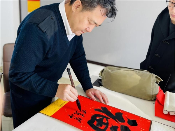 在一众优秀书画家们的带动下,群众热情参与,活动现场翰墨飘香、热闹非常,书画家们各显身手、挥毫泼墨,一句句欢乐吉祥、年味十足的新春祝福语跃然纸上,字里行间洋溢着浓浓的情意和真挚祝福,也为基层工作送出带着满满祝福的“文化年货”。