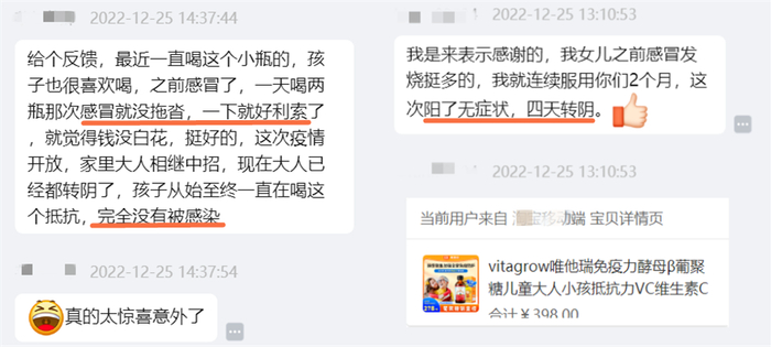 婴童全量免疫专家VITA Grow唯他瑞推出了年度重磅新品全量葡聚糖,既能补充孩子成长所需的营养,又能全面激活孩子免疫系统,一经面市,就深受广大宝妈们的追捧,新老客户都争先抢购尝鲜,妈妈网、小红书等平台都出现了不少宝妈相互推荐种草的情况,市场口碑良好。
