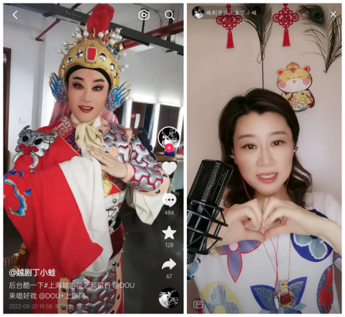 有时,线上和线下也会发生一些微妙的联动。去年3月,丁小蛙在线下举办了三场专场演出,顺便和同行拍了一些抖音短视频,看到视频的粉丝都一一从各地方赶到了上海的剧场。“隔着屏幕不隔心”,她说,平时在舞台上,戏曲演员与观众互动有限,而直播间拉近了演员与观众的距离。