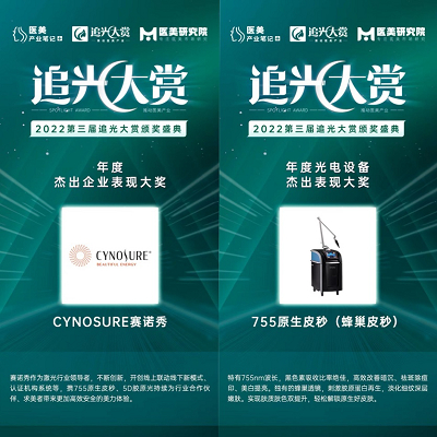 优质的产品和服务让赛诺秀获得行业内的肯定。755原生皮秒(蜂巢皮秒)荣获2022时尚媒体OnlyLady美容天后大赏“年度祛斑美白大奖”,且连续两年获得权威美容杂志《New Beauty》“最佳多效激光设备”奖项。此外,赛诺秀还荣获2022未来医美大会暨追光大赏杰出企业表现大奖、755原生皮秒(蜂巢皮秒)获得年度光电设备品牌杰出表现大奖。