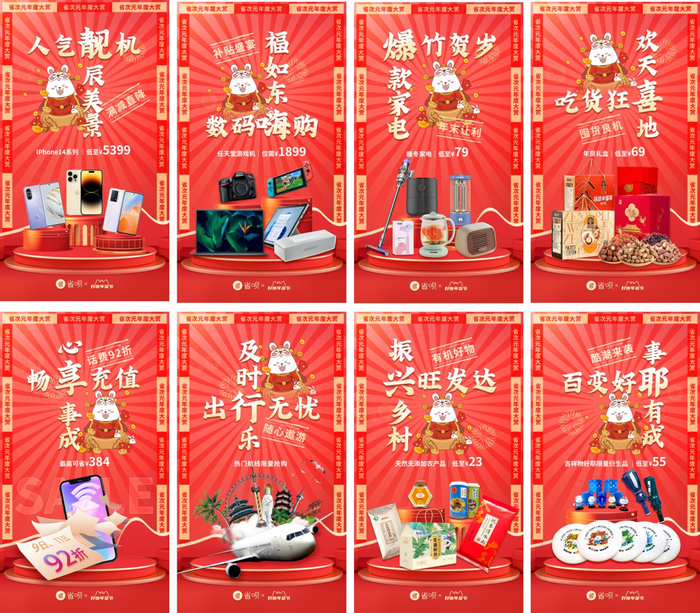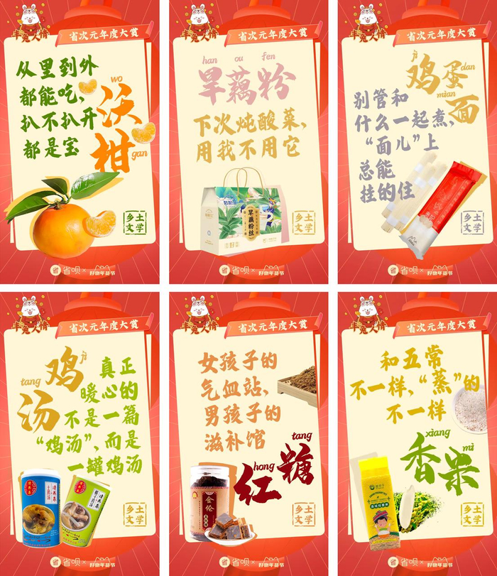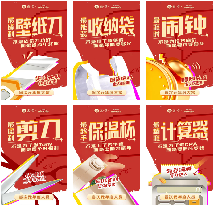 不难理解,尤其是在疫情放开的今年,人们囤年货的意义绝不止“买买买”,通过采办沉甸甸的年货,人们寄托了对新年的期待。省呗这次推出的“好物年货节”,从以物拟人的#社畜囤年货图鉴#到朴实且暖心的“乡土文学”,以“省次元年度大赏”为主题贯穿始终,诚邀与用户一起奔赴充满活力与更多想象力的兔年。