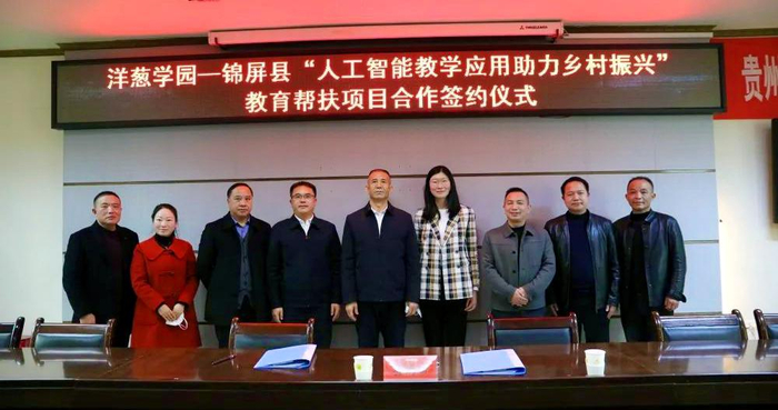 近日,洋葱学园与贵州省锦屏县教育和科技局签约,联合开展“人工智能教学应用助力乡村振兴”教育帮扶项目。