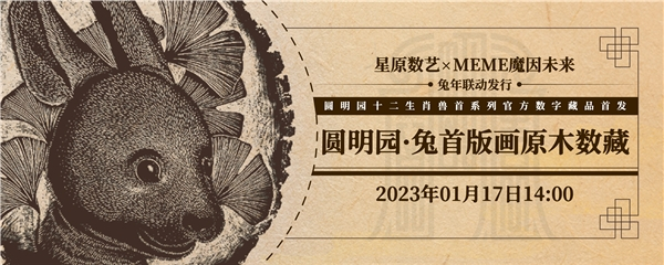 农历兔年将至,钟爱传统文化的数藏爱好者们将迎来一份极具价值的生肖数字藏品年礼——以圆明园兔首铜像为基础创作的“圆明园·兔首版画原木数藏”。这是圆明园十二生肖兽首系列官方数字藏品首发,该系列数藏由星原数艺携手MEME魔因未来,双平台联动发布——星原数艺将发行3D交互形式数藏,MEME发行3D动态形式数藏,首款瑞兔藏品于1月17日14:00同时上线。