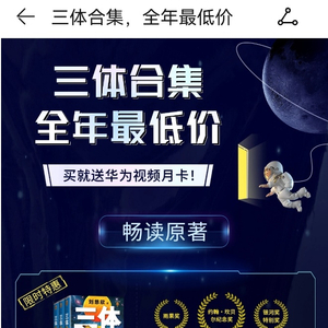 华为阅读看《三体》还送视频会员!一起感受关于宇宙最狂野的想象