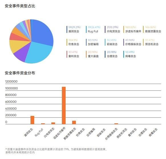2022 年,安全事件涉事总金额超过 753 亿美元,其中,重大崩盘事件超过 600 亿美元,涉虚拟币案件约 112 亿美元,漏洞攻击事件约 24 亿美元,数据泄露攻击事件约 8 亿美元,加密骗局事件约 3.4 亿美元,闪电贷攻击事件约 2.6 亿美元,价格操纵攻击事件约 1.3 亿美元,Run Pull 事件约 7684 万美元,预言机攻击事件约 3736 万美元,套利攻击事件约 1015 万美元,钓鱼攻击事件约 1110 万美元,前端攻击事件约 495 万美元,治理攻击事件约 220 万美元,病毒攻击事件约 120 万美元。