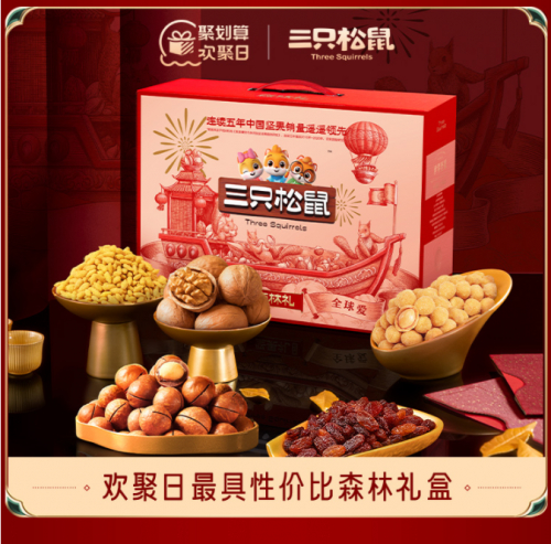 最终此次天猫欢聚日期间,三只松鼠坚果礼盒再次展现超高人气,百万级爆款三只松鼠鼎紫礼盒三天累计销售破772万、最具性价比森林礼盒三天疯抢超10万件,为三只松鼠年货节战绩再添上辉煌的一笔。