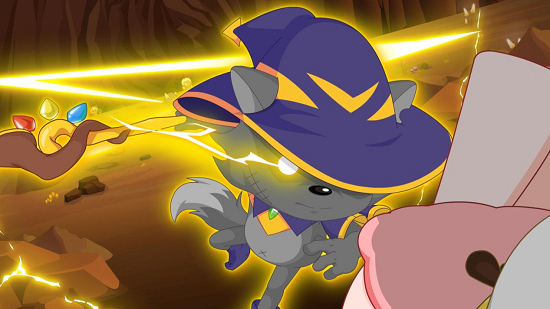 喜羊羊作为聪明勇敢的代表,一直像勇者一样保护着羊羊们,他所获得的专属武器叫做“勇者之剑”,上至能够削掉巨龙的利爪大战怪物,下至能够顺利切菜、剔牙,十分全能;而另一位男主角灰太狼一直以来都喜欢发明和尝试各种新奇玩意,他的专属武器名为“聚灵杖”,虽然操作难度高,但能够操控火,风,雷三种元素,十分厉害。