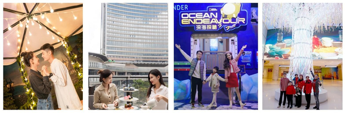 (游客可通过携程、美团、云闪付、微信小程序、抖音等平台领取消费券及购买产品。详情可关注官方微信公众号:创新方NOVOTOWN )