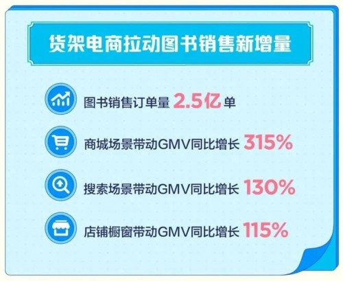 以促进知识惠普为例,在过去一年抖音电商“全民好书计划”每个季节都举办读书活动,让更多新书好书被大家看见、了解和获得。过去一年,抖音电商把2.5亿单图书送到读者身边,商城渠道带动图书GMV同比增长315%。