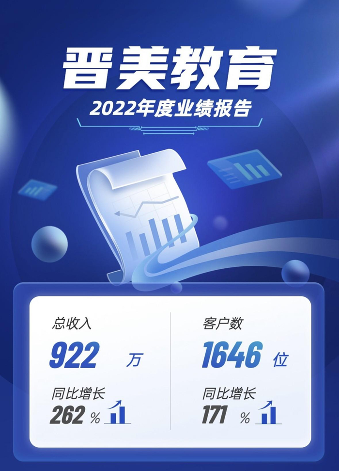 该公司奉行“公开化管理”理念,据说他们内部开会特意留出一张空椅子叫“客户椅”,而且每一位来访者到晋美爱的教育中心都能在墙壁上看见他们每周每月的经营数据。根据他们在2023年初的公开数据,整个2022年营收接近1000万,比2021年增长261%。