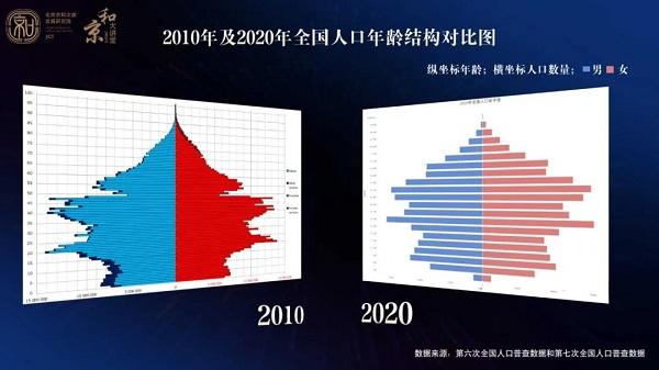 以上两张图是2010年和2020年全国人口年龄结构对比图,从数据中可以看到,十年来新生儿出生数量急剧减少、老龄化的趋势加重。截至2021年底,全国65岁及以上老年人口达2亿以上,占总人口的14.2%,按照联合国标准,已经进入“老龄社会”,预计到2035年左右,我国将进入重度老龄化阶段。