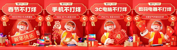 为带给消费者更大的优惠力度,1月20日晚八点至2月5日,转转集团旗下转转和找靓机两大平台推出“春节不打烊”大促活动,手机不打烊、3C电脑不打烊、数码电器不打烊,超低价“剁手”,多类玩法不重样。