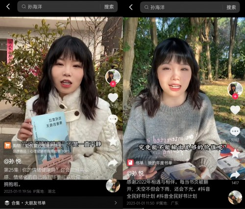 片中的女孩就是孙悦。小时候因为弟弟被拐,父母常发生争吵,每当这时,她就会躲进书籍这个“避难所”。从《撒哈拉的故事》到《那不勒斯四部曲》,书籍成为她的“秘密朋友”,给予她源源不断的精神力量。2021年12月,历经14年,弟弟孙卓回家,她开始用抖音记录一家团圆的生活。在此后的交流中,网友发现她喜爱阅读,对许多书籍都有着独特的见解。渐渐地,很多人开始留言、私信给孙悦,让她帮忙推荐一些适合自己和孩子的书籍,她也开始把成长过程中支撑她的力量带给更多人。去年9月,孙悦出版了记录父亲寻子14年的书——《回家:14年又57天》。这本书饱含深情,文笔细腻,在抖音电商一经发售就进入文学小说畅销榜,至今已卖出10万多本。在分享与写作的过程中,孙悦逐渐从书籍的阅读者成长为创作者,也从“孙卓姐姐”成为她自己。