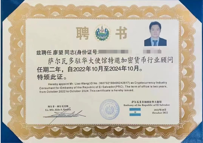 原子链(原子币)CEO廖望获聘萨尔瓦多驻华使馆加密货币行业顾问