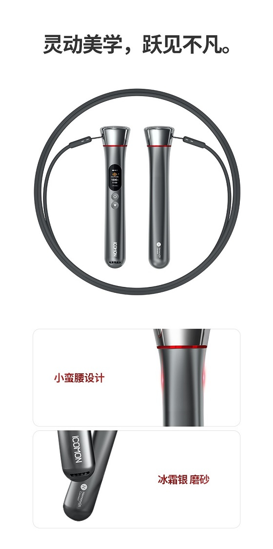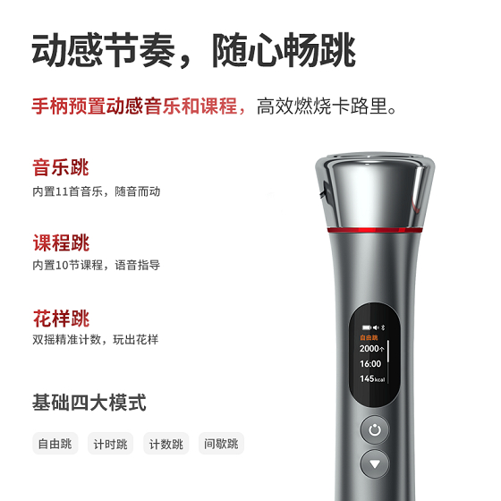 而在智能运动健身市场中,智能跳绳的前景非常乐观。究其原因,主要是因为跳绳本身就是一项比较传统的运动,使用简单,没有改变人们的使用习惯,却能为用户提供更强大的服务和功能。智能跳绳手柄上配备了一个小型的显示屏,将量化和可视化锻炼融为一体,实时记录跳绳详情,让用户的运动状况一目了然,所以,智能跳绳也越来越受到广大健身爱好者的欢迎!