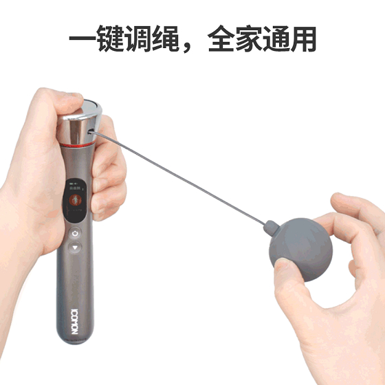 告别繁琐调绳,妙不可言。一键调绳,按住顶部按钮即可自由调节绳子长短,随心秒变,一根跳绳一家通用。