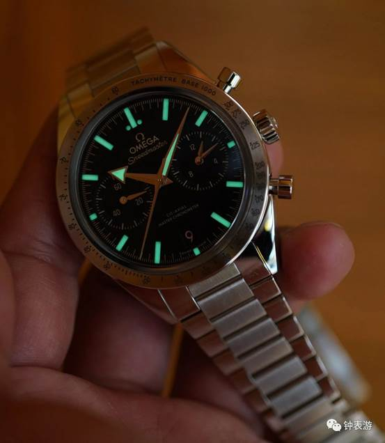 今天,欧米茄最新款超霸’57腕表 的测速圈最高时速,依然保持1957年的300公里/小时。这是对1957年原版超霸的一种复古和纪念 ,同时也很实际:我们的日常车速,多数情况下超不过150公里/小时...