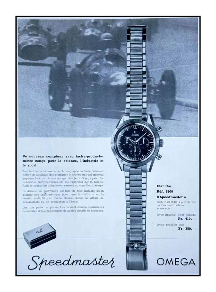 虽然早在1962年,欧米茄超霸已开始随美国NASA宇航员执行太空任务,成为最早进入太空的腕表之一。但实际上,诞生于1957年的欧米茄超霸,最初是为赛车运动而生的 。这也是超霸的英文名为什么是“Speedmaster”的原因:计算速度、为赛车计时。当时即将迎来110周年庆的欧米茄,计划将超霸打造成“一款为专业研究、工业发展和体育运动而设计的新型计时腕表”。