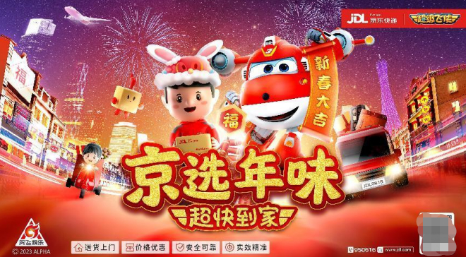 京东快递梦幻联动超级飞侠IP, 为2023开好年送福运