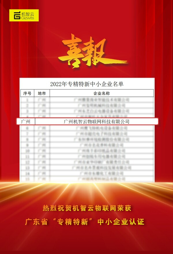 机智云荣获2022广东省"专精特新"企业认证
