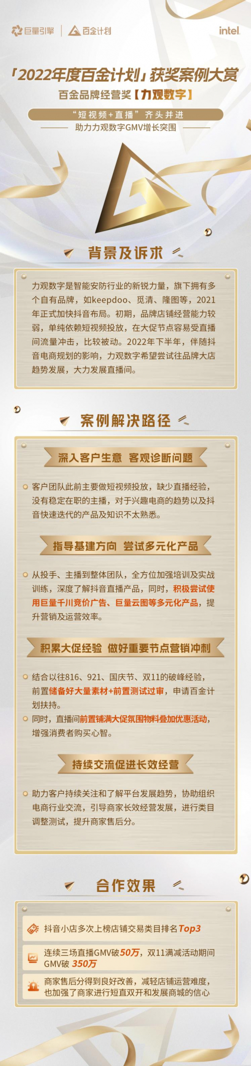 巨量引擎本地消费业务中心打造「2022年度百金计划」,通过细化并设立电商商家、门店商户、电商达人三大赛道,发掘营销和经营整合一体的全域增长生意新模式,沉淀本地生意经,树立行业经营风向标。其中,门店商户赛道重点针对抖音生活服务所覆盖的“餐饮、酒旅、到综”等行业商户,通过挖掘拓展传统“业务破局”,扩大经营规模场景的可借鉴生意模式,助力本地生活类门店商户在抖音实现线上经营转型。同时还有“百大商家成长扶持”和“TOP客户品牌扶持”,为商户伙伴提供丰富的扶持权益,推动本地商户向金字招牌不断迈进。
