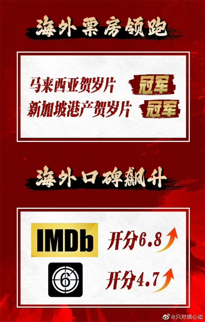 不仅线上好评不断,线下也有着很好的成绩,值得一提的是该电影在海外的票房遥遥房领先,《天龙八部之乔峰传》最先在马来西亚和新加坡在2023年1月16日上映,电影高超的特效与中国的武侠情怀征服不少外国友人,在两地贺岁档期均夺得票房冠军。精良的电影制作让“金庸武侠世界”走向了国际。1月19日在中国香港一经上映,便拥有了超过人气,口碑一路高升评分也超过了同档期备受关注的《灌篮高手》,是新春之际,与家人或朋友重温经典的好契机。