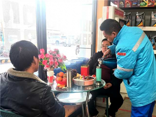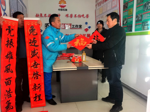 乔炯说:“我们能做的,就是从小事着手,尽量多帮助顾客。”腊月的甘南高原,室外滴水成冰,为了让回家的路变的更加温暖,乔炯每天早早起来将生姜、红糖、葱、大蒜等熬成汤,摆放在顾客休息区的桌子上,并制作了温馨提示牌,进站的客户纷纷为他竖起大拇指。作为书法爱好者,写毛笔字是乔炯的个人特长,春节前,贡巴加油站开展了“加油送春联”活动。大年三十,常年跑货车的李师傅和老婆回家前来加油,领到了三幅春联和一个“福”字,夫妻俩人开心的合不拢嘴,对乔炯说:“你们的服务让人好暖心,翻年第一箱油我们就来你们站加。”