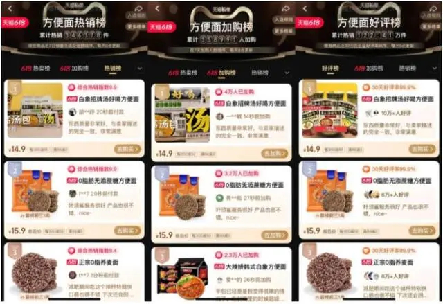 2022年618期间,白象汤好喝就持续在京东、天猫两大平台热销,并多次登顶京东方便食品热卖榜和天猫方便面热销榜。