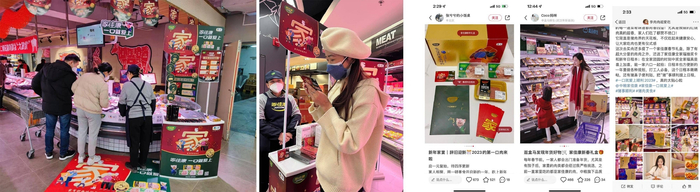 同时,品牌持续在小红书、微博等社交平台持续进行探店和产品种草,借助达人精致内容传递家佳康好肉“安全更健康”品质,吸引流量关注,激发素人口碑,进一步引流终端门店和线上电商,结合销售端活动成功拉动销量提升。