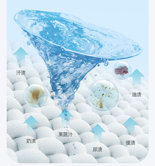 植物皂液的主要成分椰子油酸,提取于植物棕榈科椰子树,具有良好的发泡、稳泡、渗透去污、抗硬水等功能,天然安全的温和配方,去污洁净不伤手。同时添加酵素成分,重点针对宝宝日常活动面临的各类污渍:食物残留、奶渍、汗渍、尿渍、粪便等各种蛋白类污渍进行降解清洁;还能帮助除绒毛,保护衣服颜色。