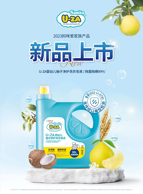 专注收获品质,专业赢得信赖,Sanita U-ZA婴幼儿柚子净护洗衣皂液的新品上市,希望可以帮助万千家庭进一步解决宝宝洗衣难题,为家人和孩子撑起一片天然安全的小天地。