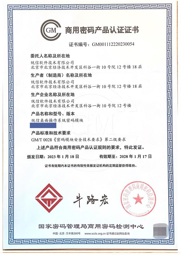 统信软件成为国内首家获得“商用密码产品认证证书”的操作系统厂商