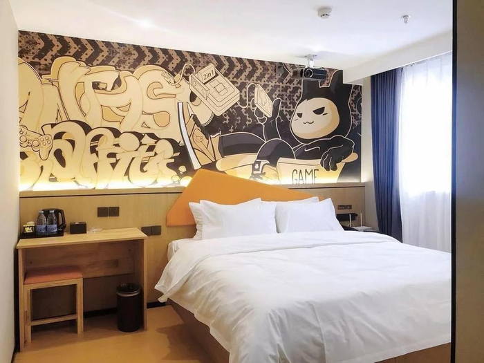 从Check-in时前台奉茶(能量特饮)、欢迎卡,到融汇了社交区、游戏区、文创区、特色Ubar的公区,再到客房入住,IU酒店的体验动线体验始终和社交酷玩风格紧密连接。特色“IU带玩官”不仅会指引住客动线,还会定期组织周末七点趴、团战游戏夜等符合年轻代娱乐需求的活动,让旅行住宿更丰富有趣。