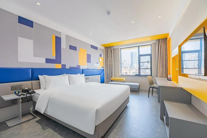 在设计上,7天酒店3.0以经典的蓝黄配色碰撞活力橙,鲜明的色彩为消费者带来年轻时尚感的同时,营造了符合Z世代审美的当代空间氛围。另外,在拆改翻新的同时融入“智能”产品,不仅满足了消费者“洗好澡、睡好觉、上好网”三大核心需求,也使旅宿更便捷化,人性化。
